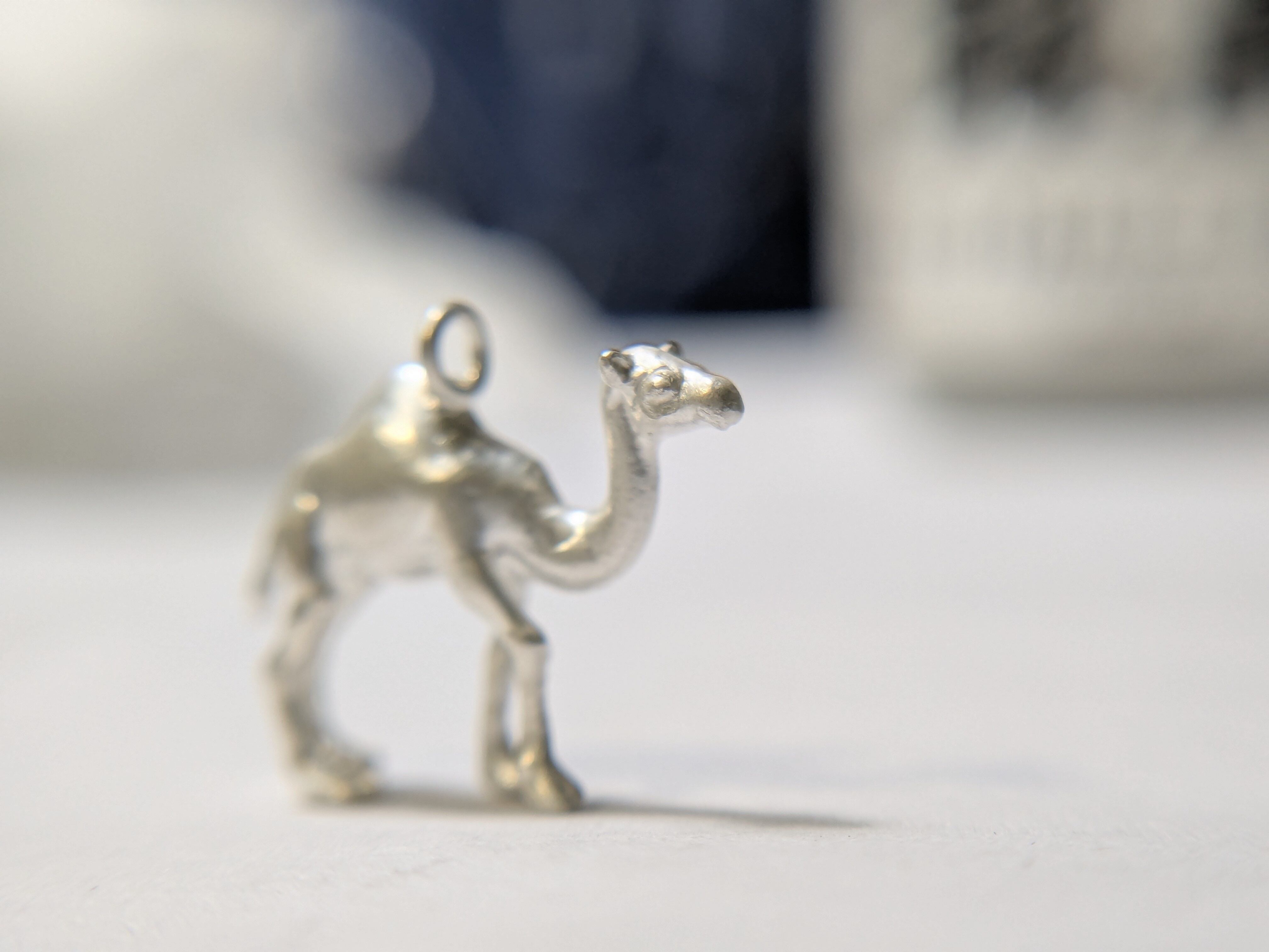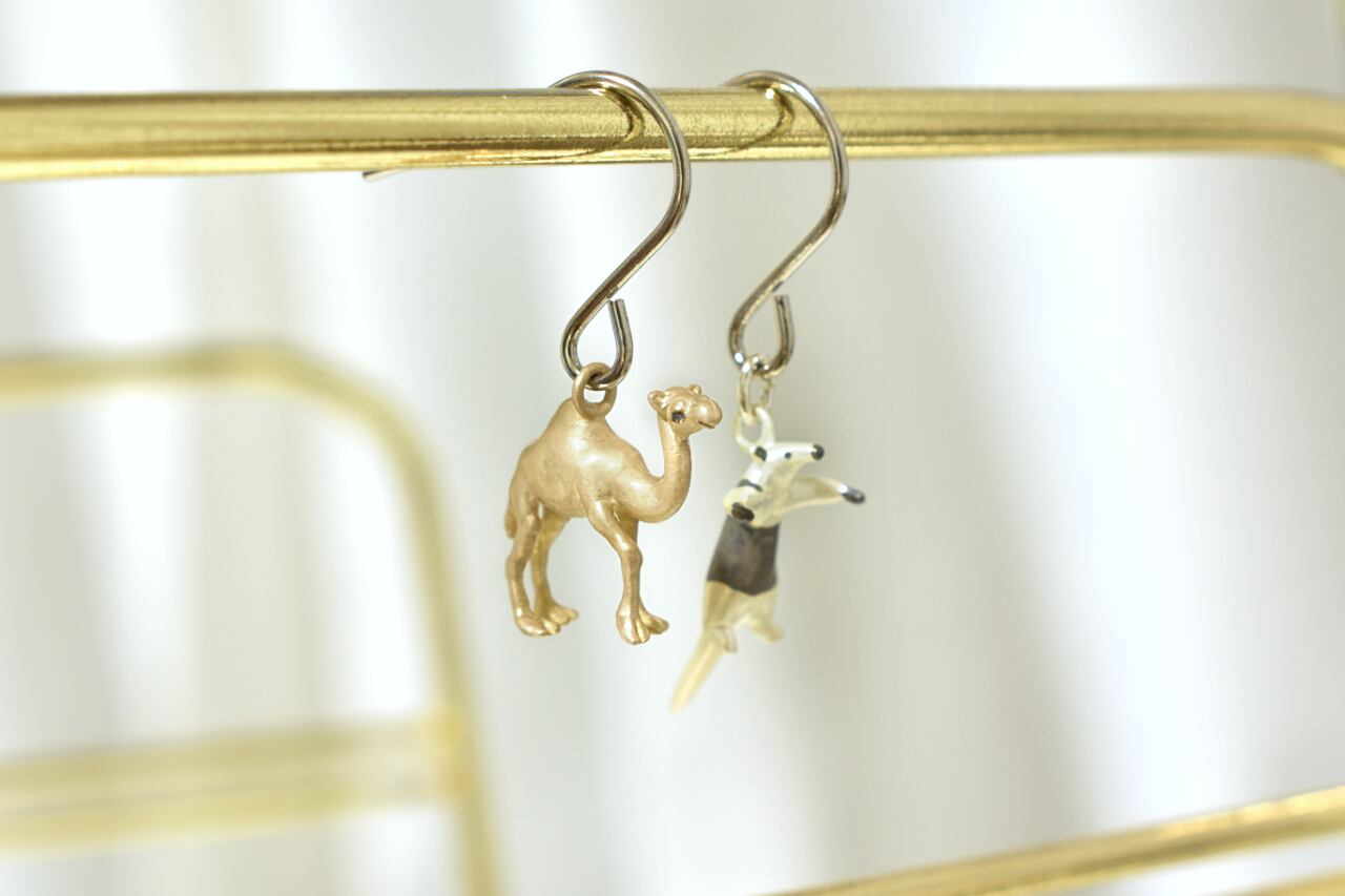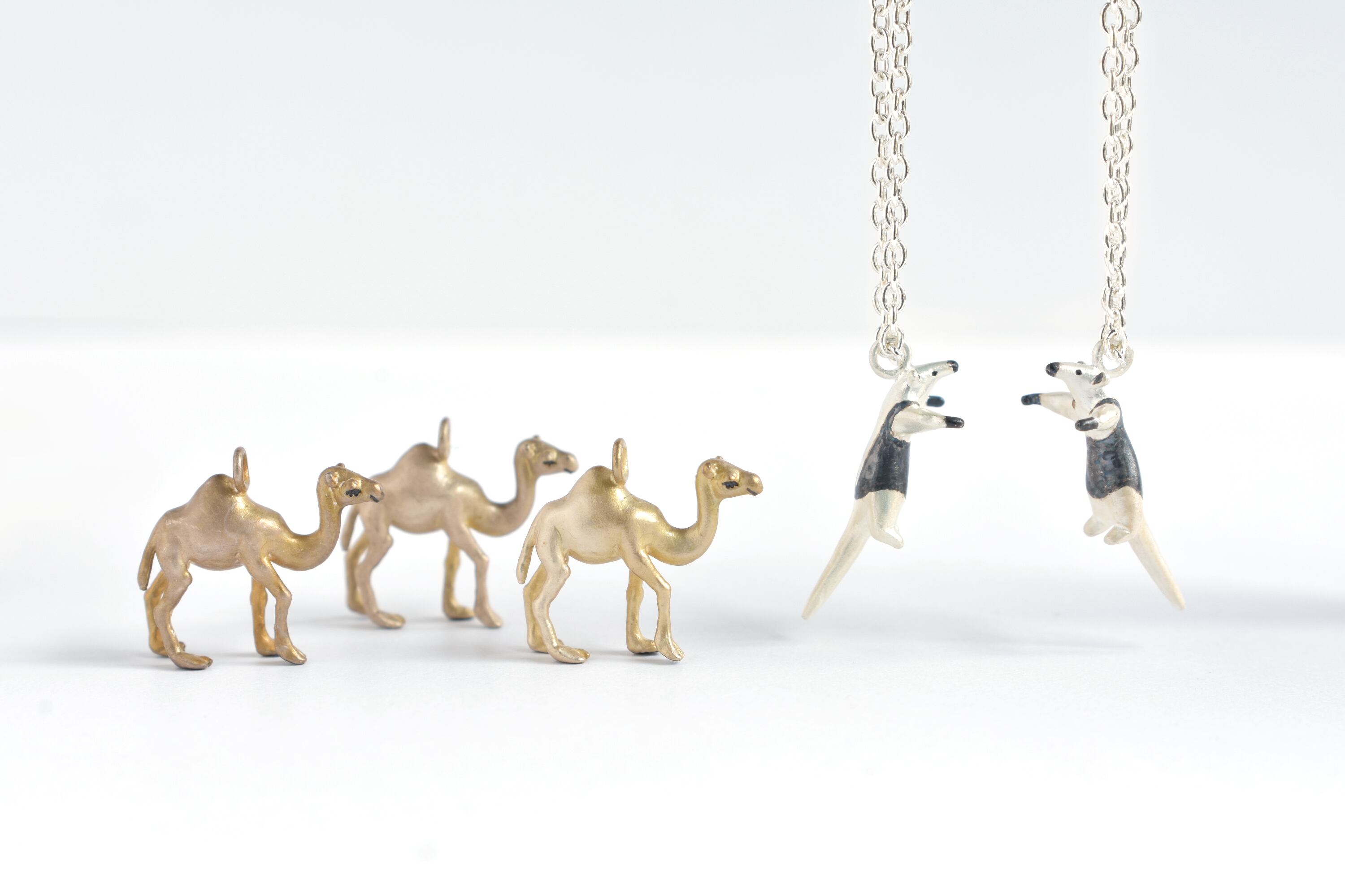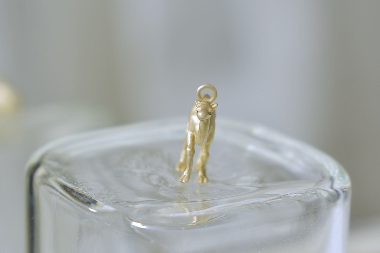 長い脚で砂漠を優雅に歩む様子をネックレスにしました。