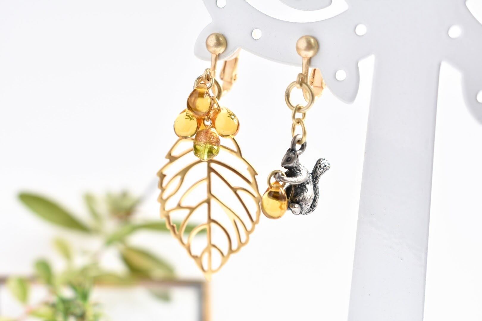 キラキラ光る帽子を被った若いドングリの様なヴェネツィアガラスのビーズを使用しています。