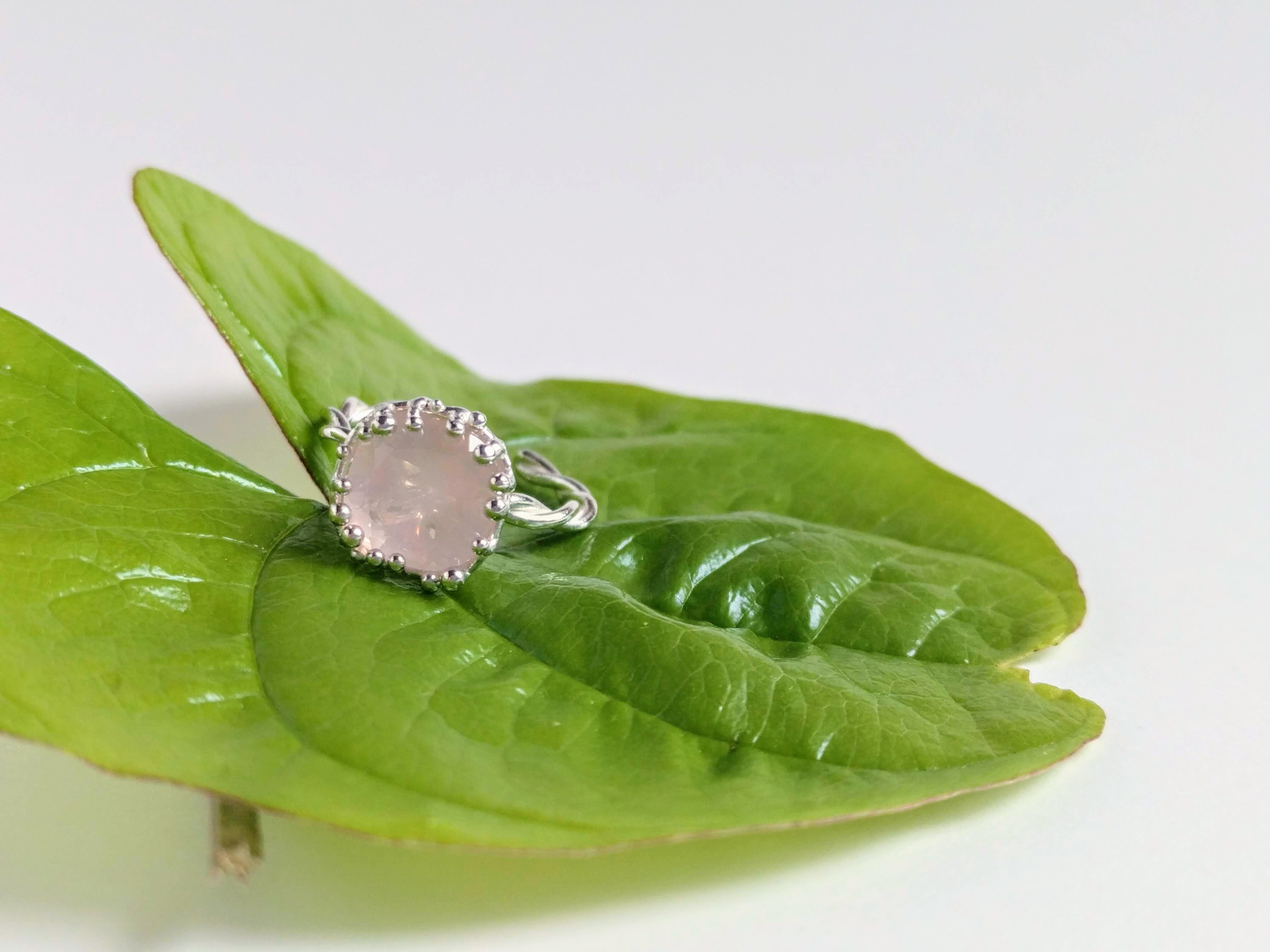 朝露に濡れた薔薇に見立てたオープンリングです。