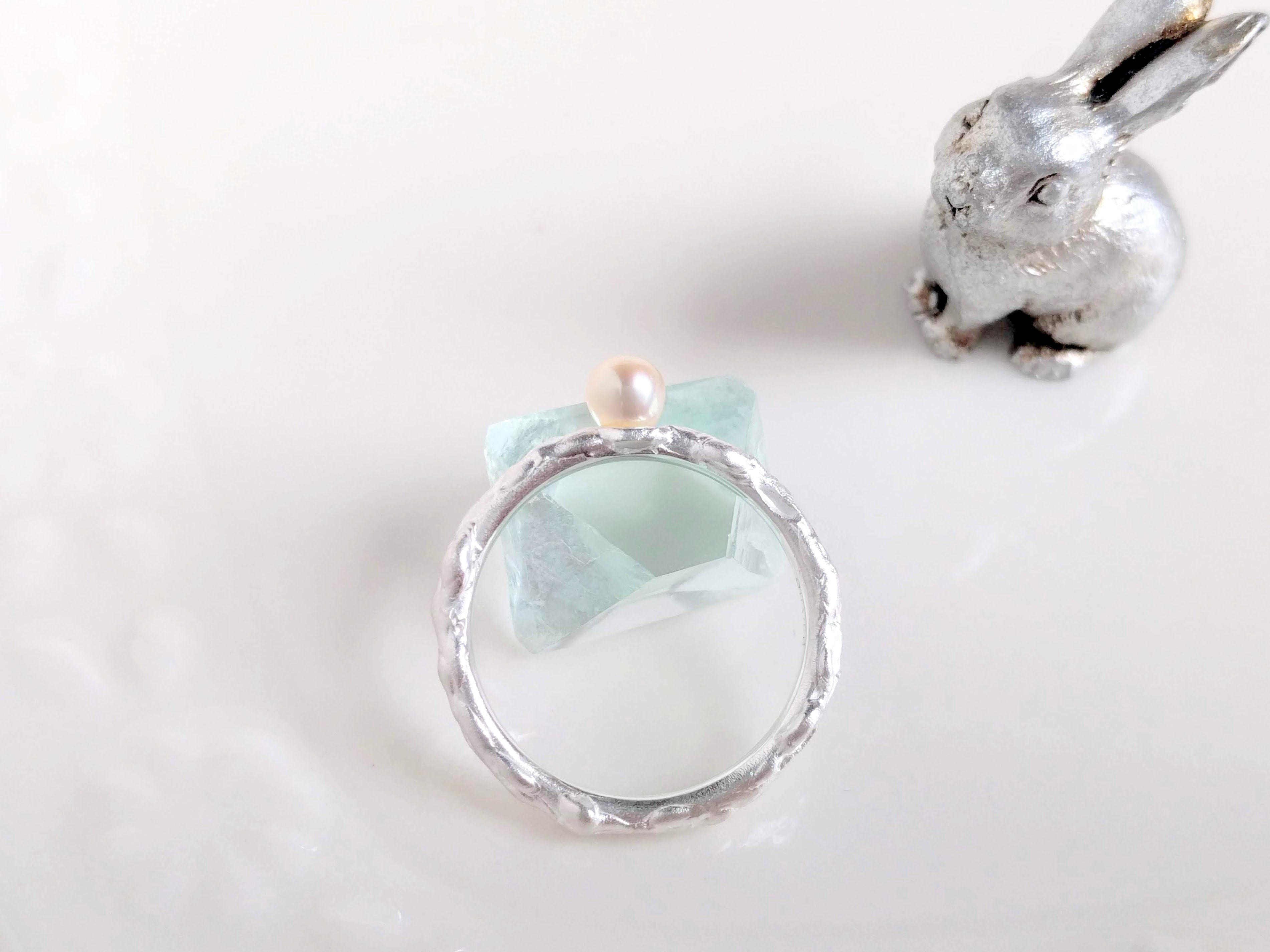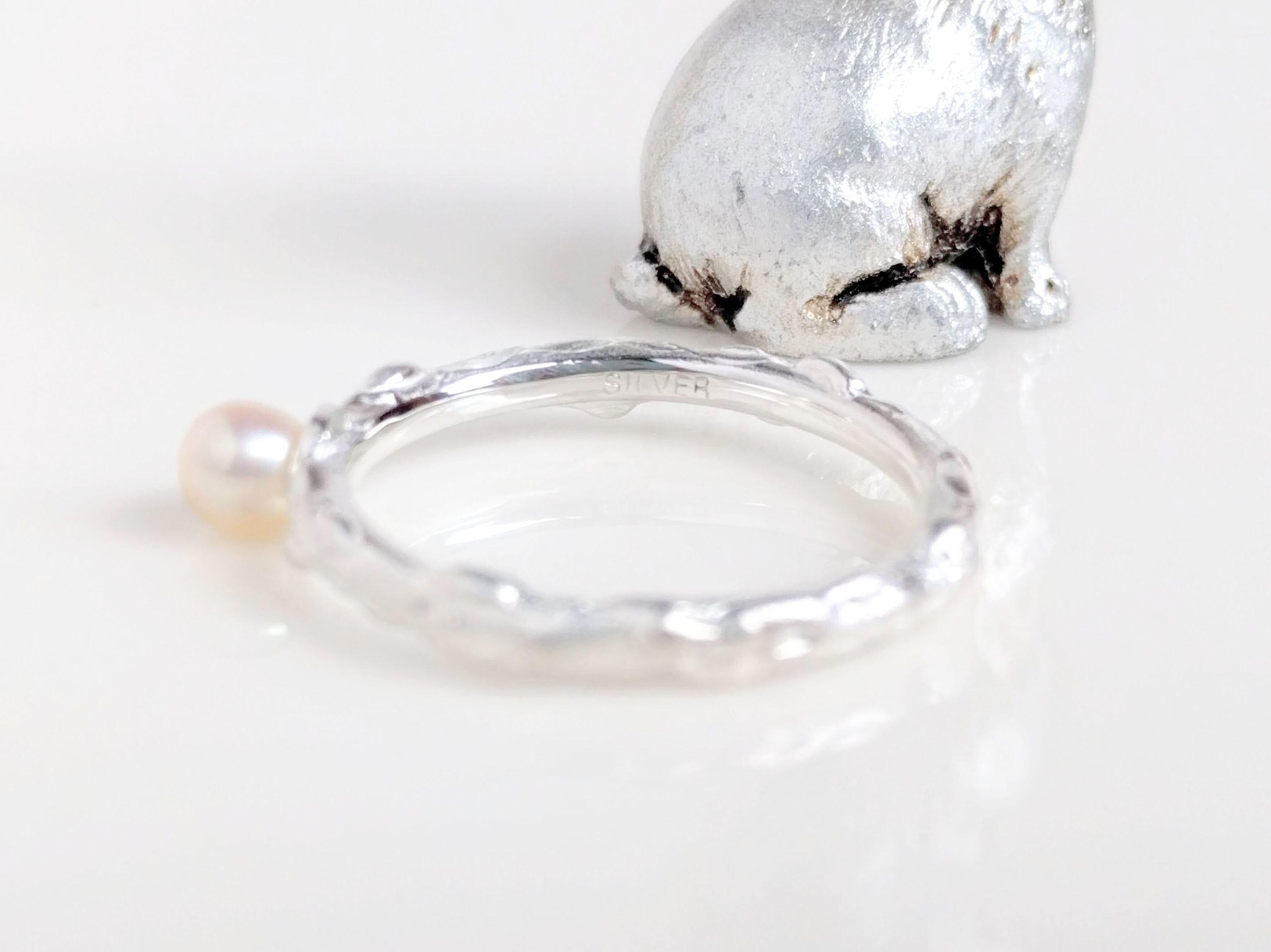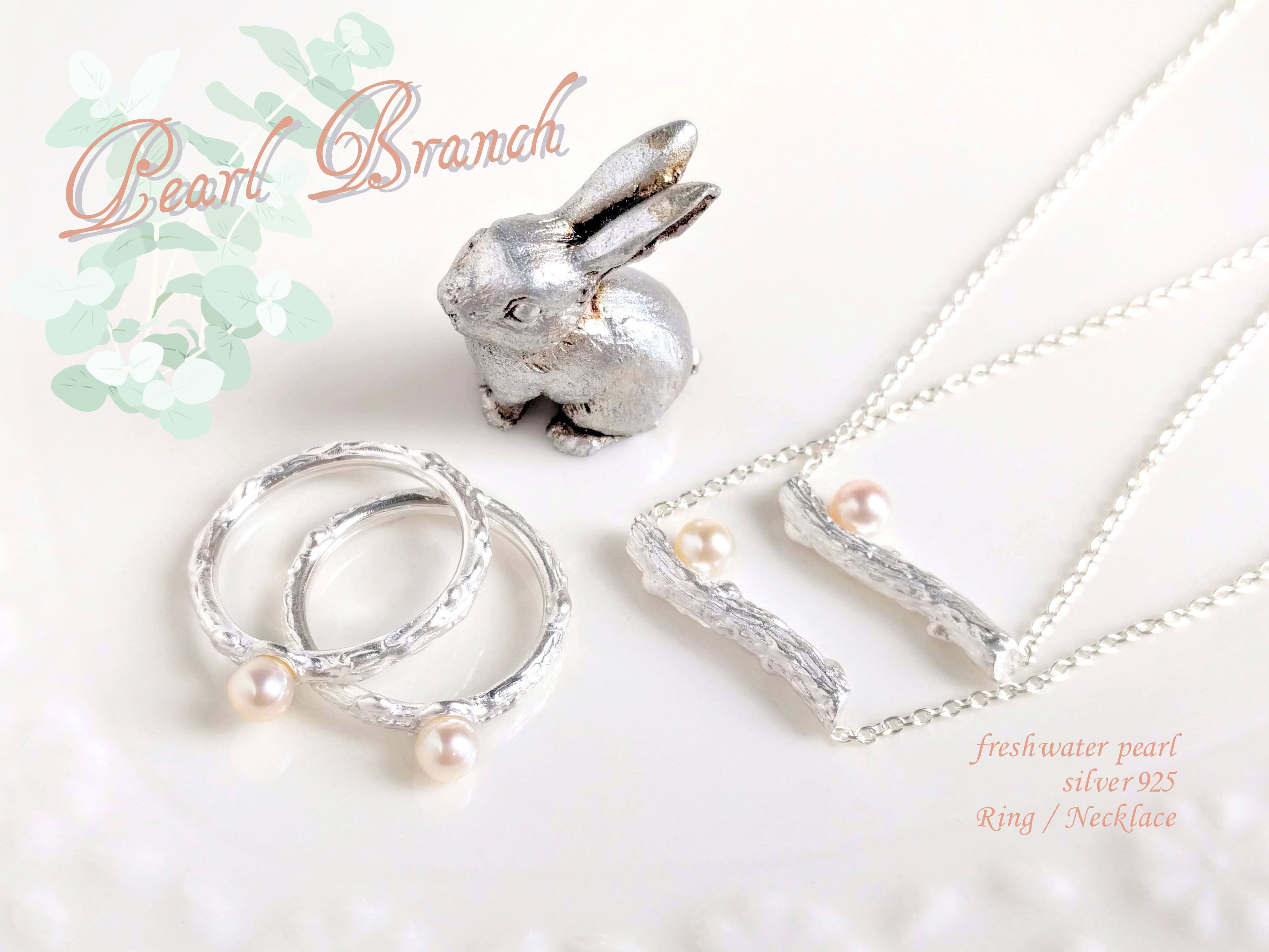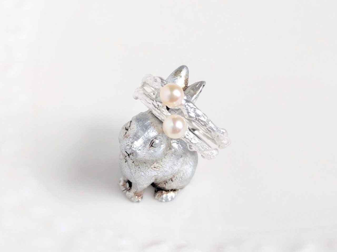 木の枝を模したシルバーにうさぎのしっぽをイメージした