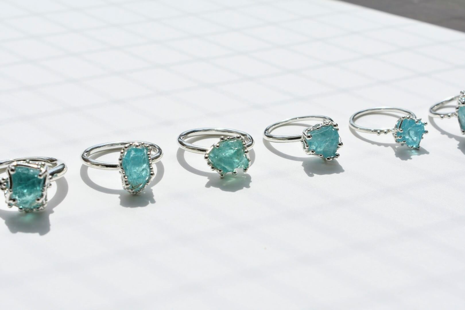 あの美しい色や水の流れを身に着けられるようなジュエリーを、と思い制作しました。