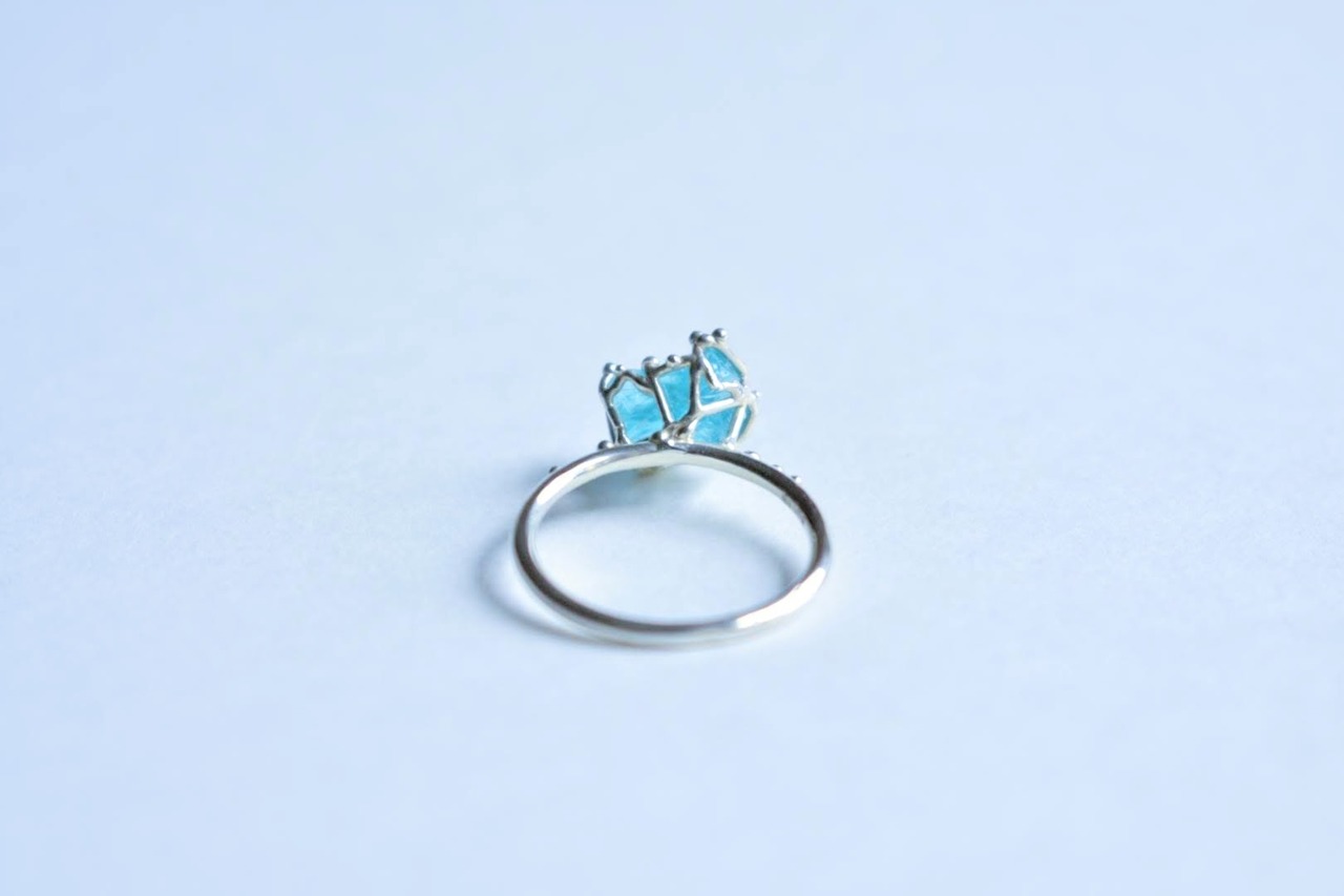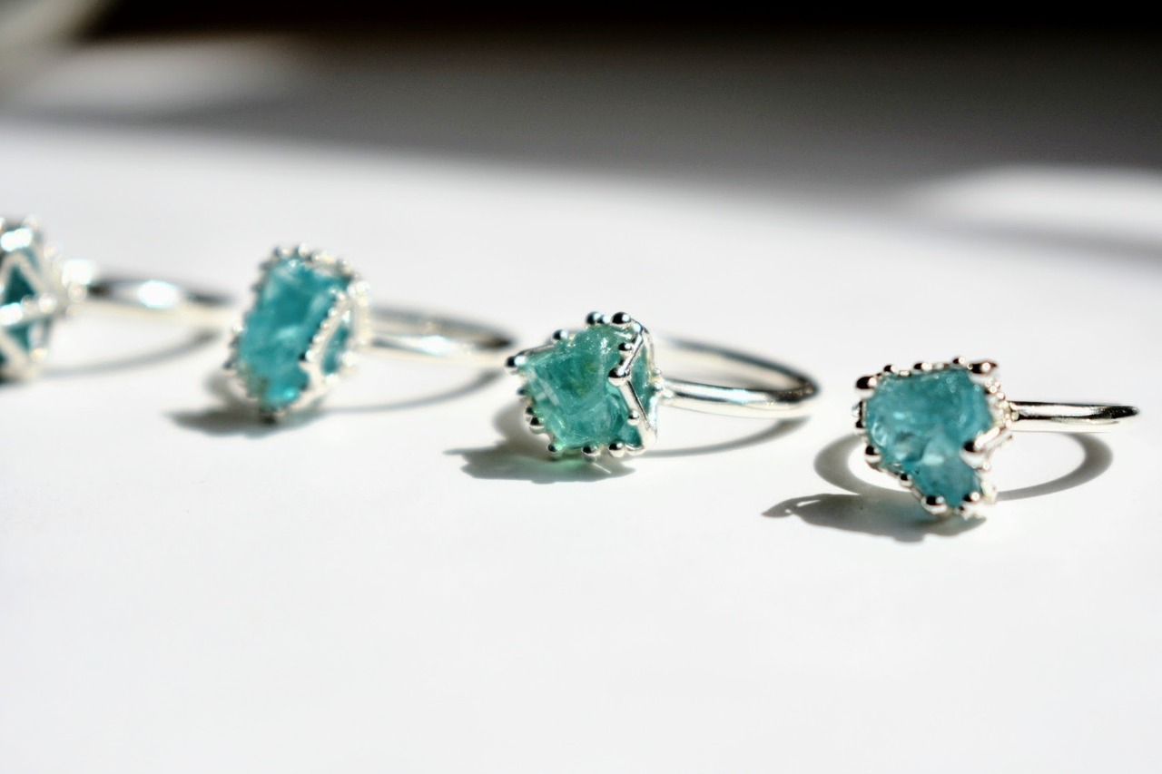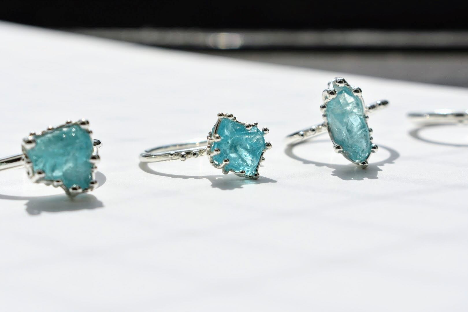 アパタイトの爽やかな色を渓流に見立てたリングです。
