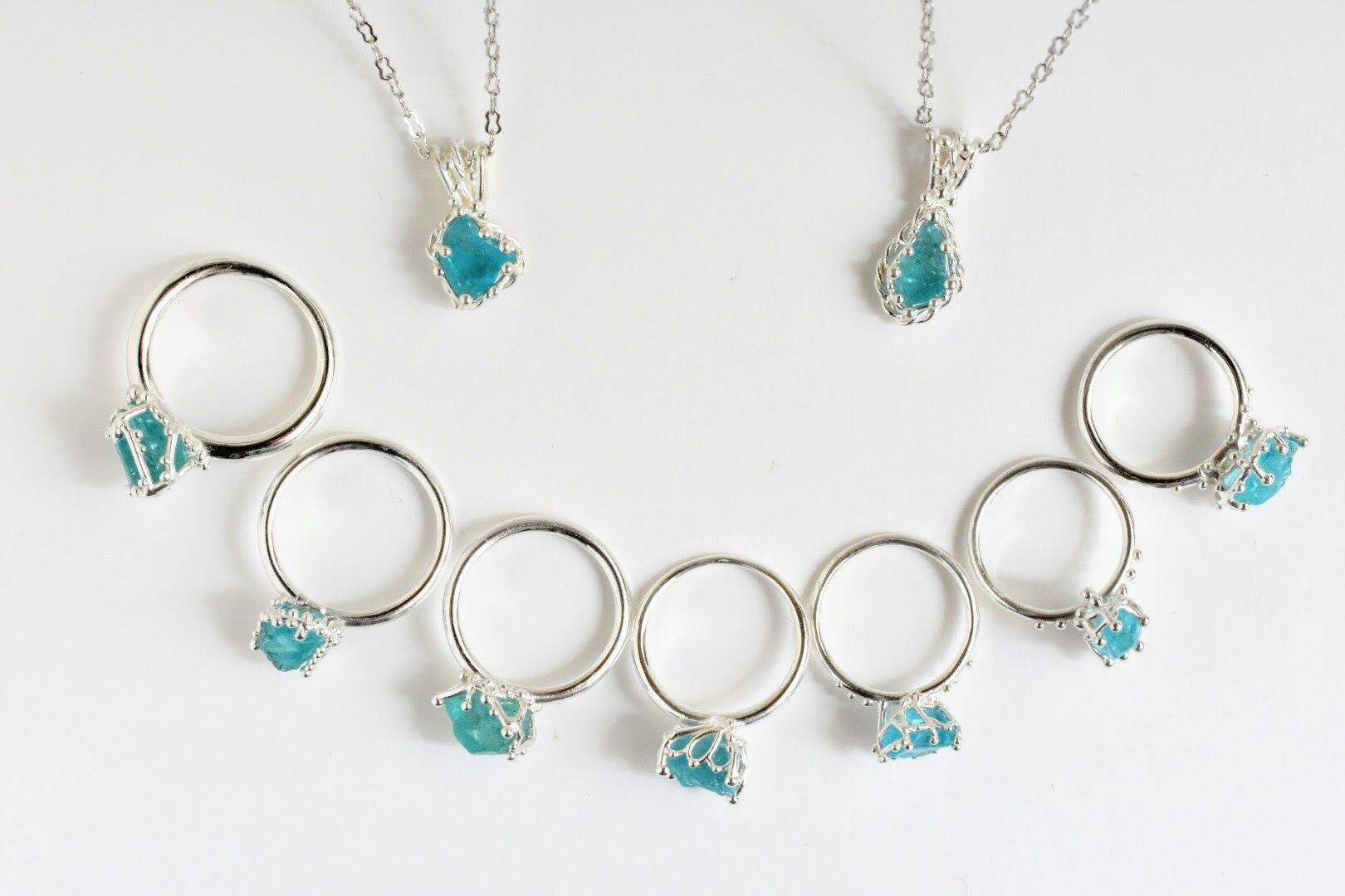 あの美しい色や水の流れを身に着けられるようなジュエリーを、と思い制作しました。